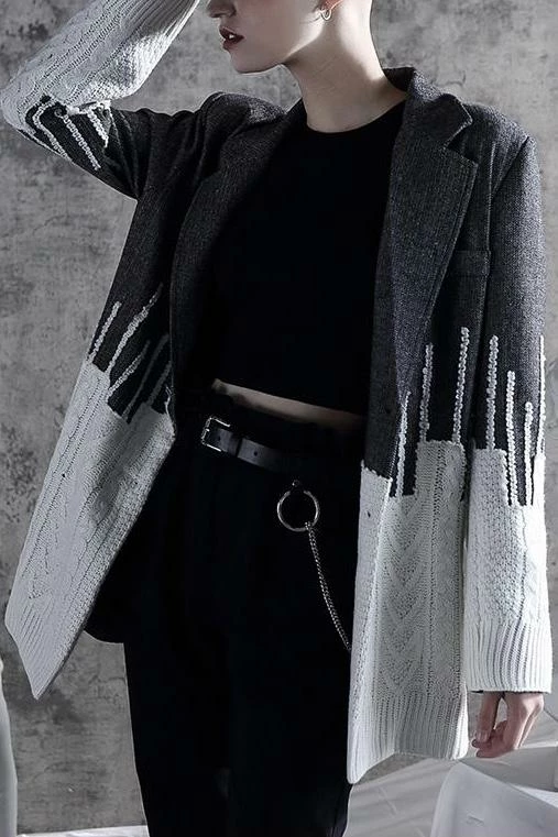 This edgy, unique look is everything we need this season. Featuring a long sleeve, patchwork knit and textured blazer with an oversized fit, dual buttoning, and pocket breast detailing. Throw over any basic outfit combo to be easily cute.