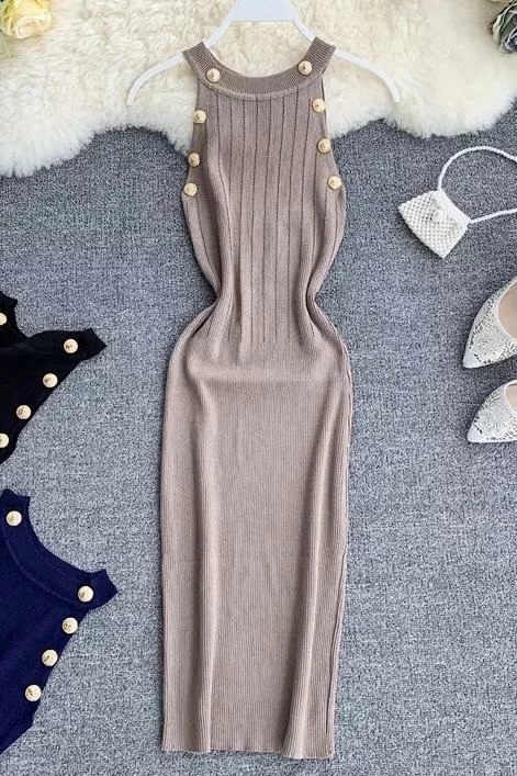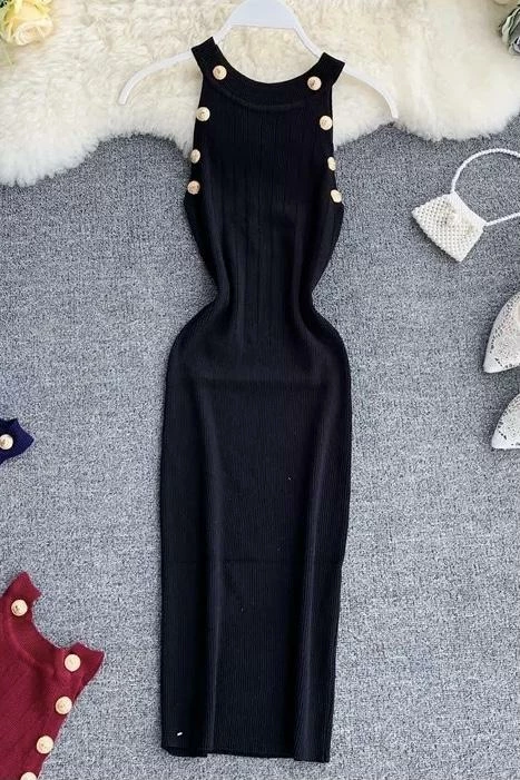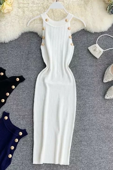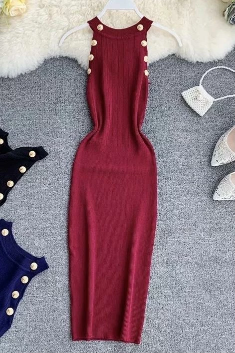 Another bodycon dress that’s perfect for every occasion. Featuring a high neckline, knit material, and gold button detailing. Pair with a pair of pumps or sneakers and a shoulder bag to hit the streets like a boss!