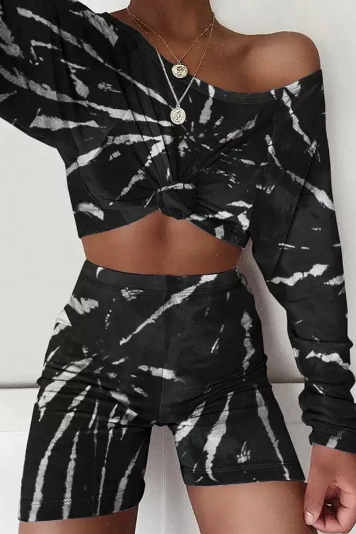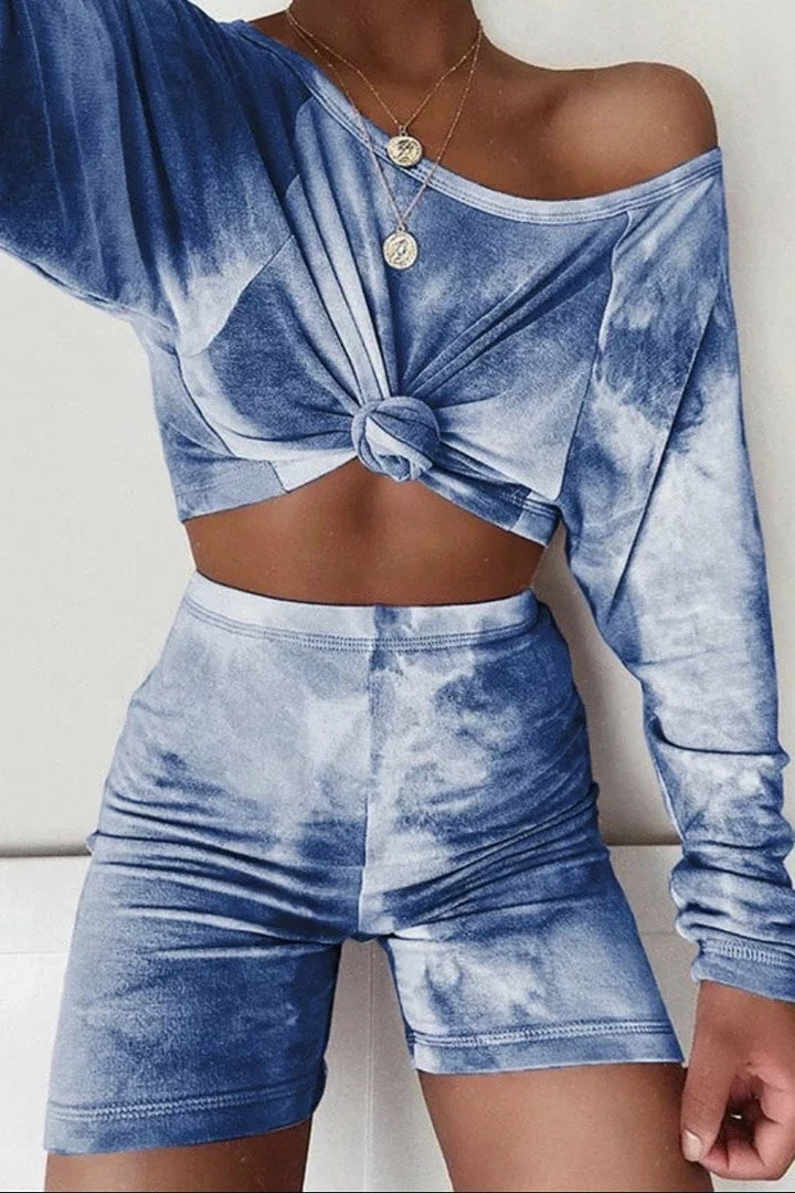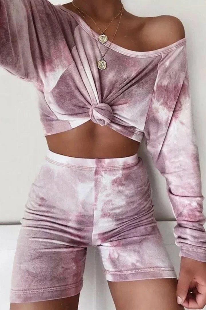 Lounge in total style in the ‘Rocky’ set! Featuring a tie dye material, cropped long sleeve top, and matching biker shorts. So cute! Pair with white sneakers and a high pony.