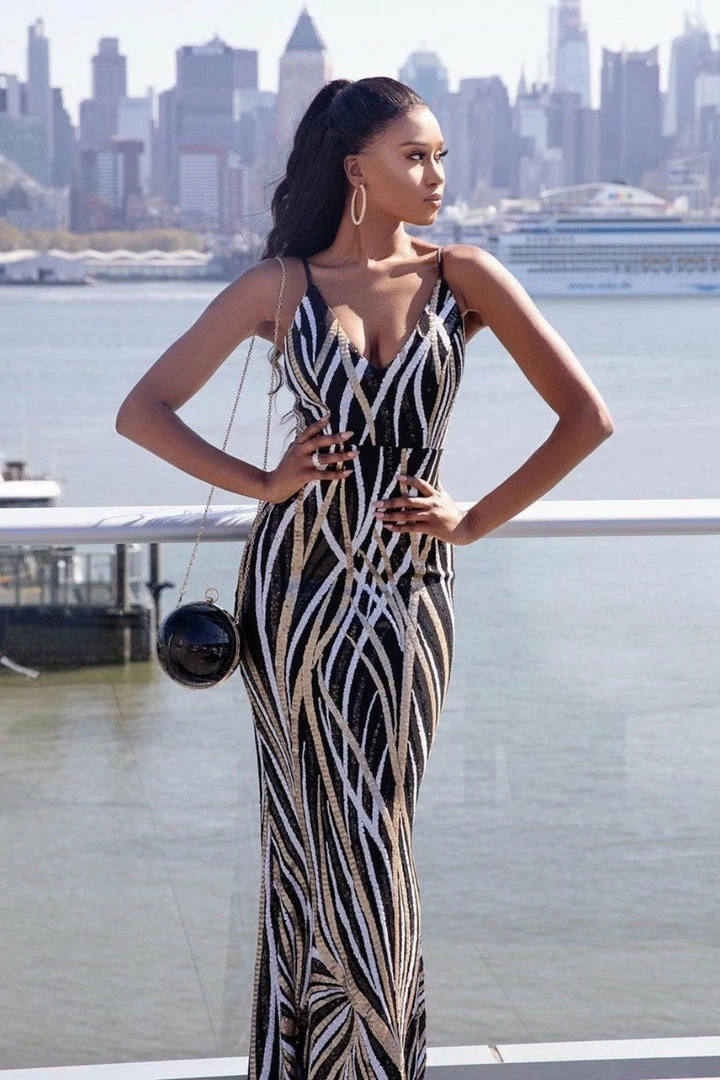 Made with Polyester and Cashmere. Has a sheath silhouette.