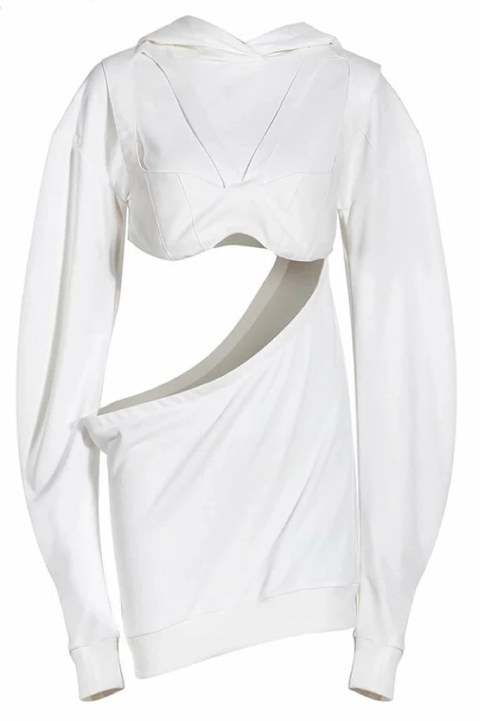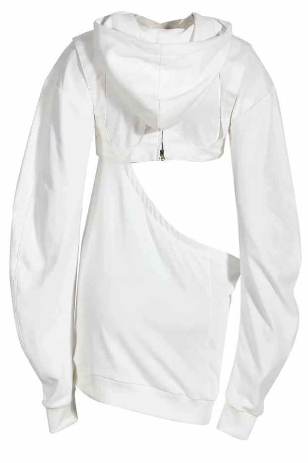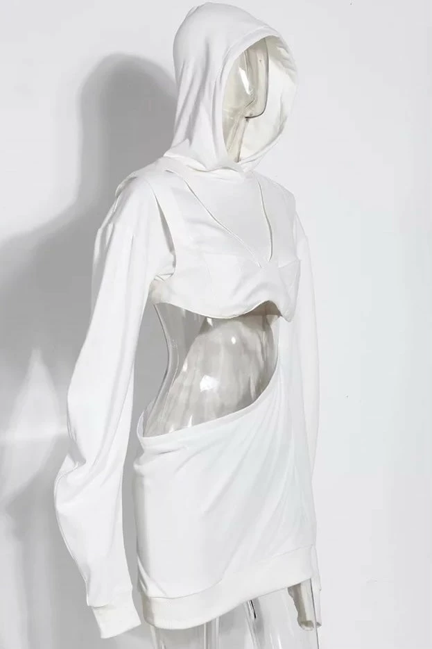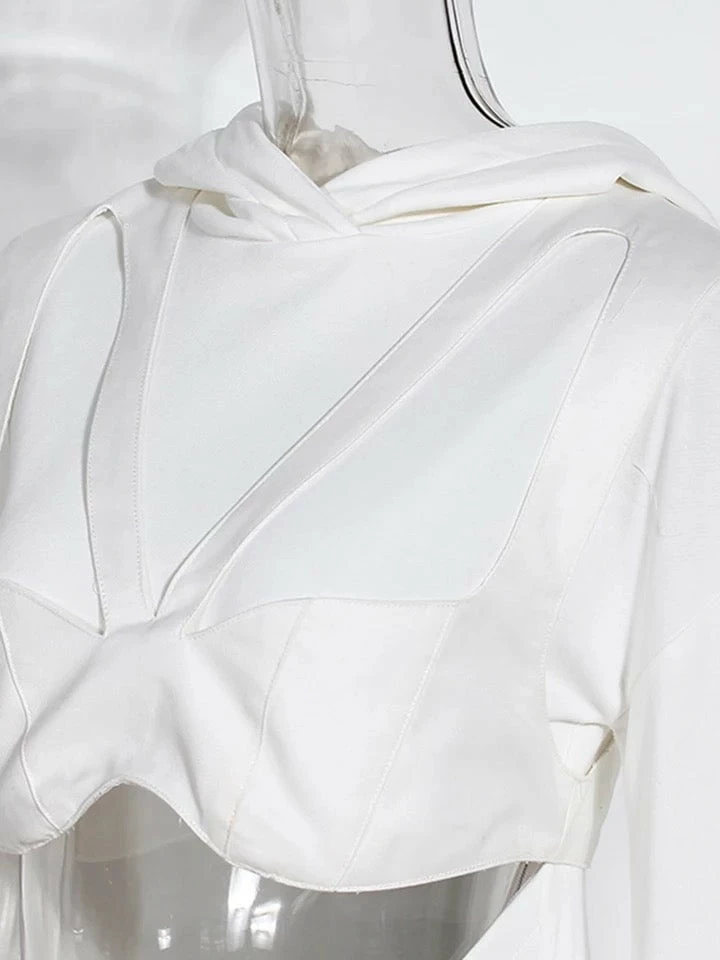 Stay stylish while you’re lounging! This long sleeve sweatshirt features a wide waist cut out, lined bust panneling, and a hood. Team over a tight tank top with denim shorts or sweatpants for a casually cool look.