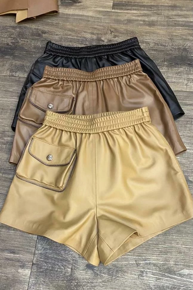 Leather weather is approaching babes. These shorts are perfect for the season featuring genuine sheepskin leather, an elastic waistband, and an attached pocket. Pair with high knee boots and a blazer for outfit that has all the fall feels.