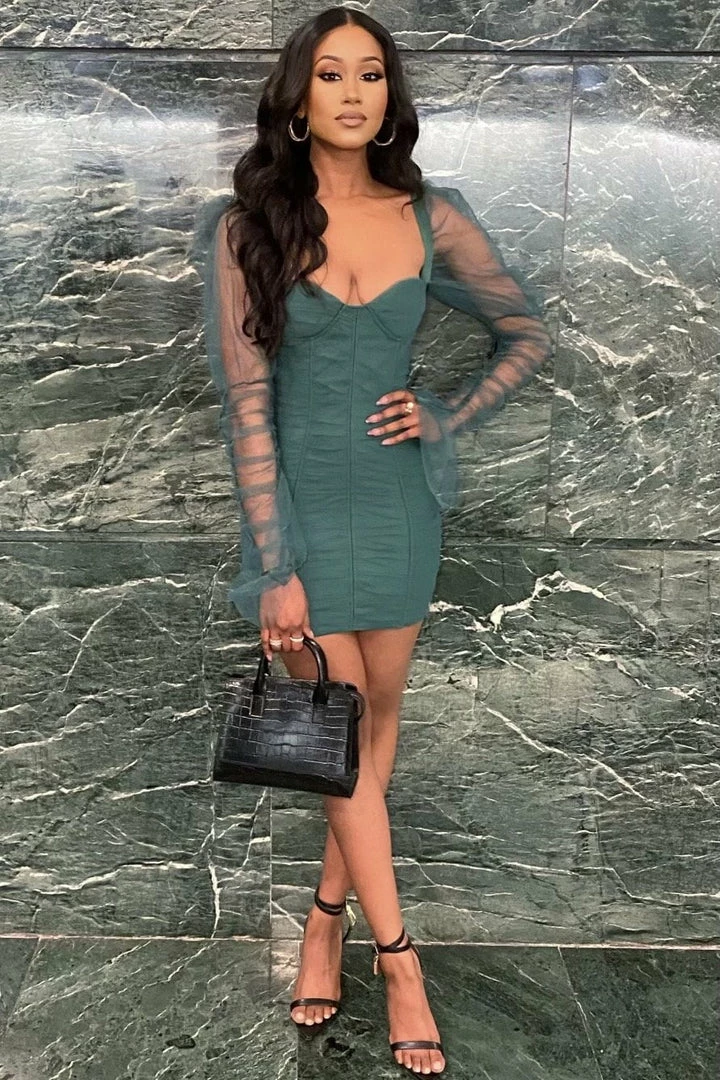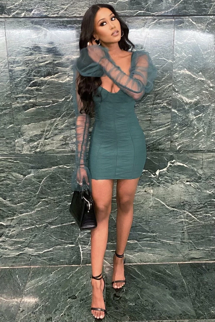 This bodycon is sure to give your weekend wardrobe a fierce update. Featuring puff sleeves, sweetheart neckline, mini length, and form-fitting fit. Team with knee high boots and a statement bag!