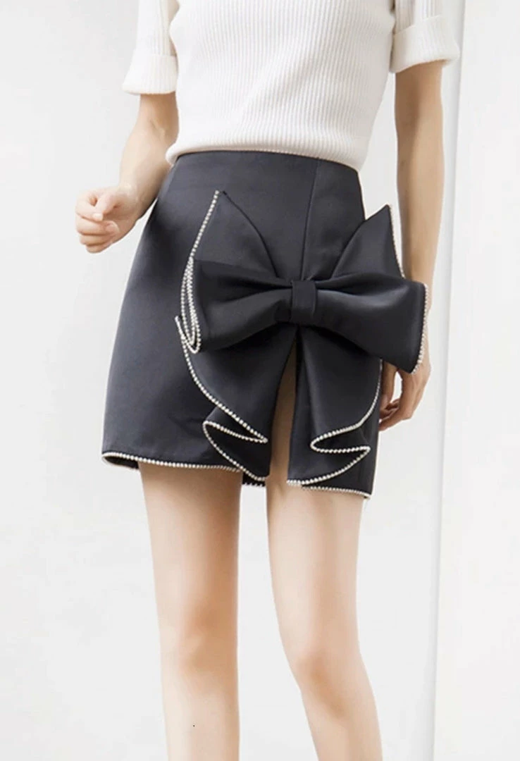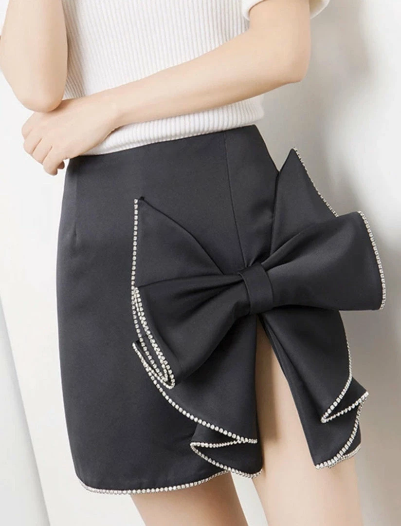 Our ‘Salome’ skirt sits perfectly on the waist, has a stunning oversized bow detail, slit on the leg, and zipper closure. Pair with a white crop top and lace up heels!
