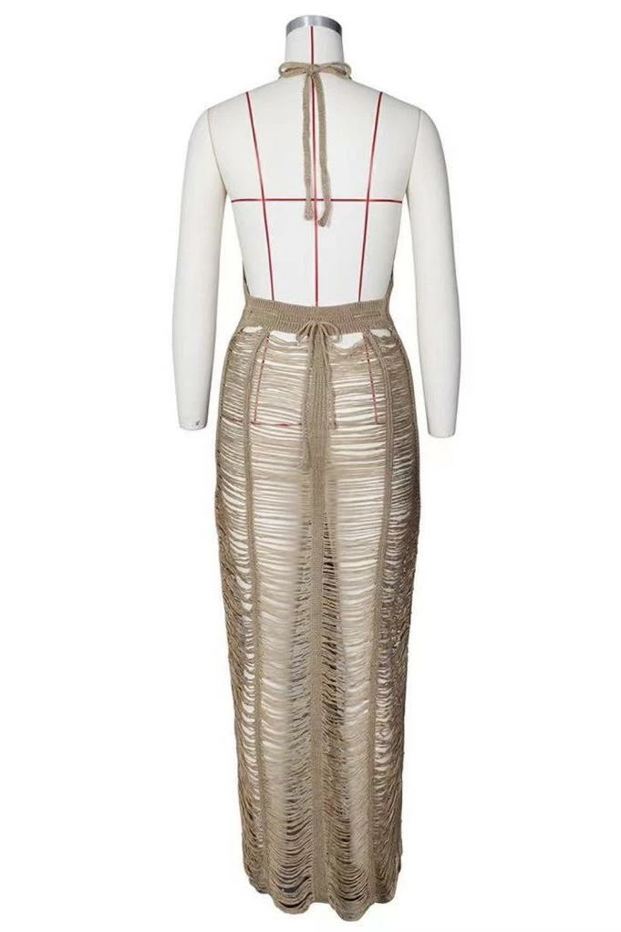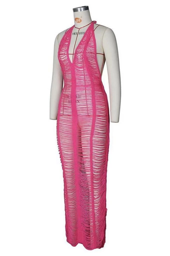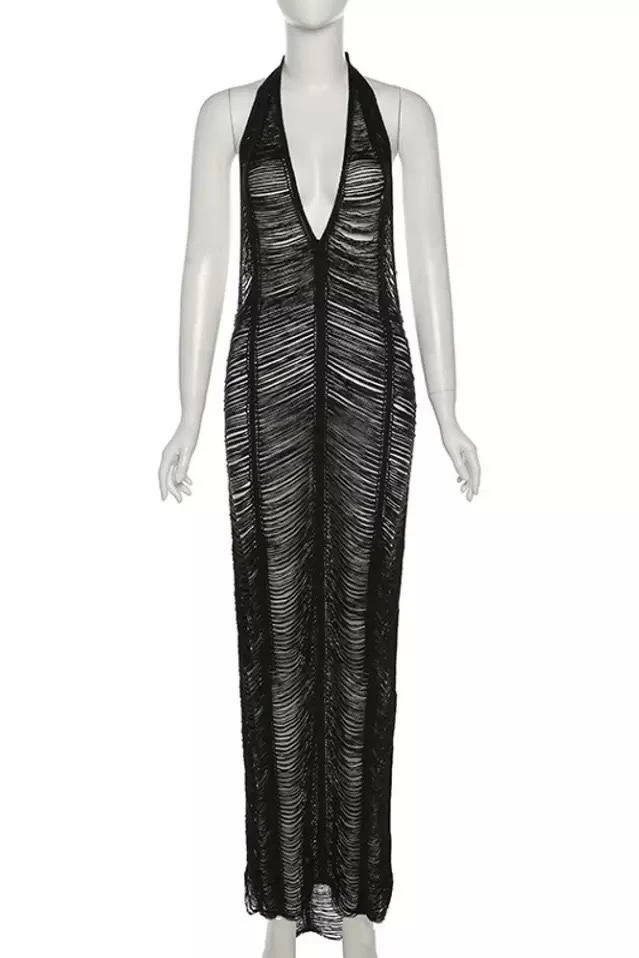 We’re obsessed with this maxi dress dolls. Featuring a halter neck, low back, fishnet see through design, and a maxi length. Throw this over a bikini and head to the hottest beach party of the summer.