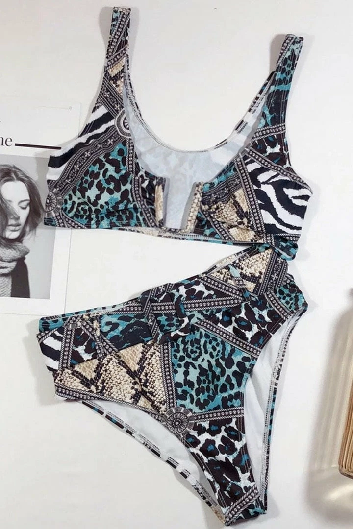 Jessica Bara Tallie Animal Print High Waisted Bikini Set Poolside Essentials