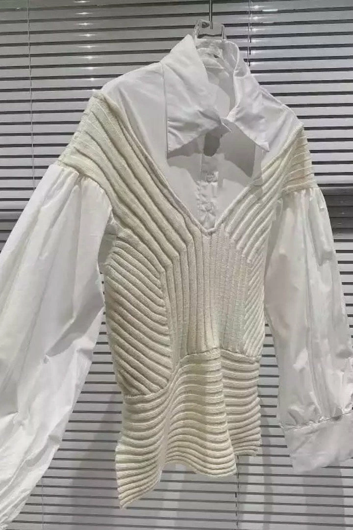 Nail all the trends this season in this super cute top! Featuring long sleeves, collar detail, and sweater vest overlay. Pair with jeans and chunky sneakers for the trendiest look!