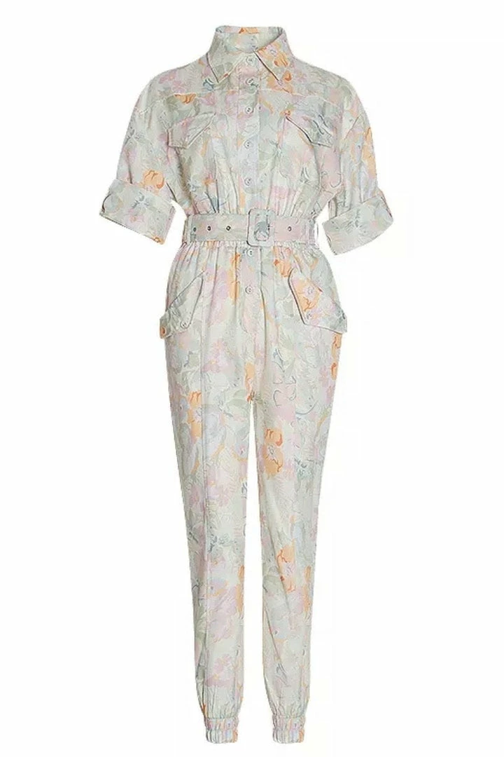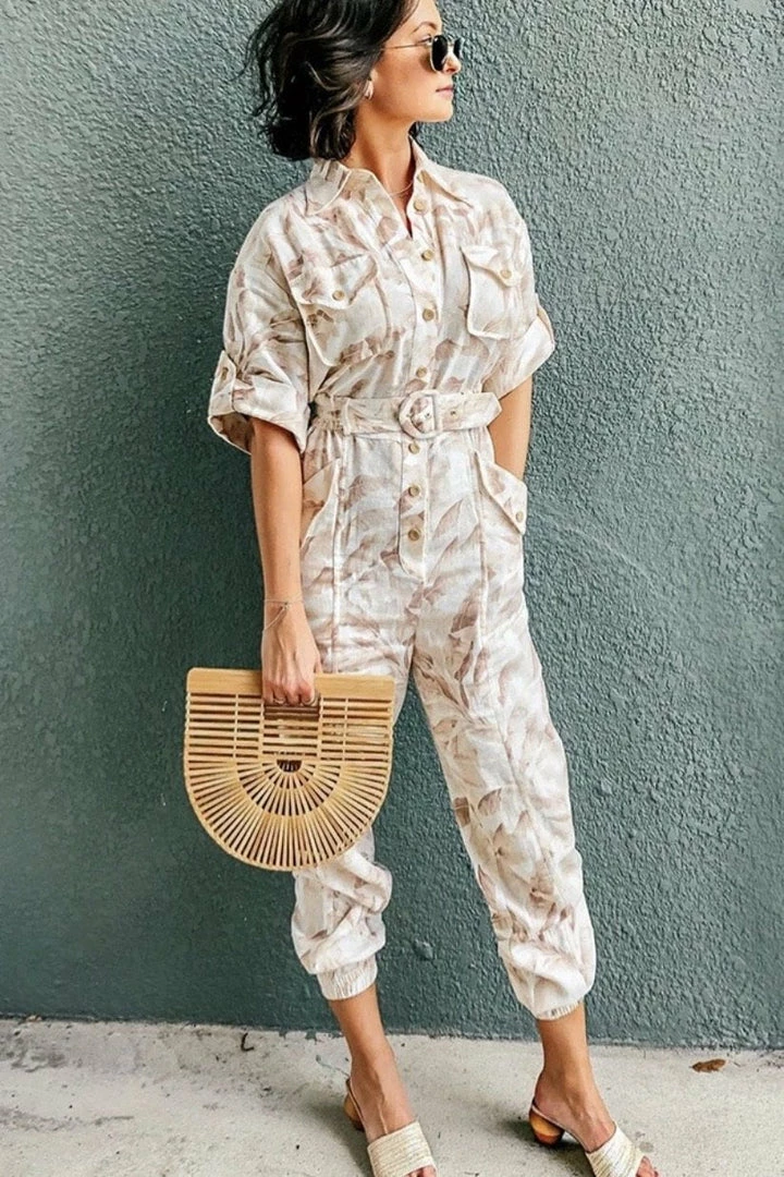 Look absolutely chic in the ‘Venezio’ jumpsuit. Featuring a printed material, short sleeves, and straight legged pants. Pair with a straw clutch and sandals for the cutest summer look.