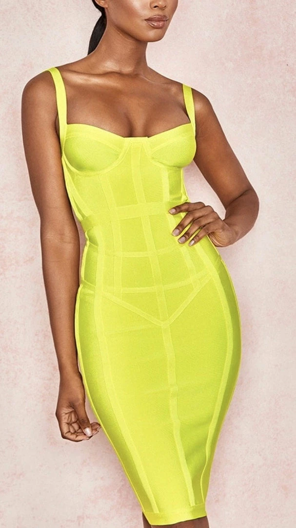 Tropical vibes from our Yasmine Dress. Featuring a bandage fit, a midi length, and spaghetti straps. This piece is extremely flattering and eye-catching. Pair with neutral pumps.