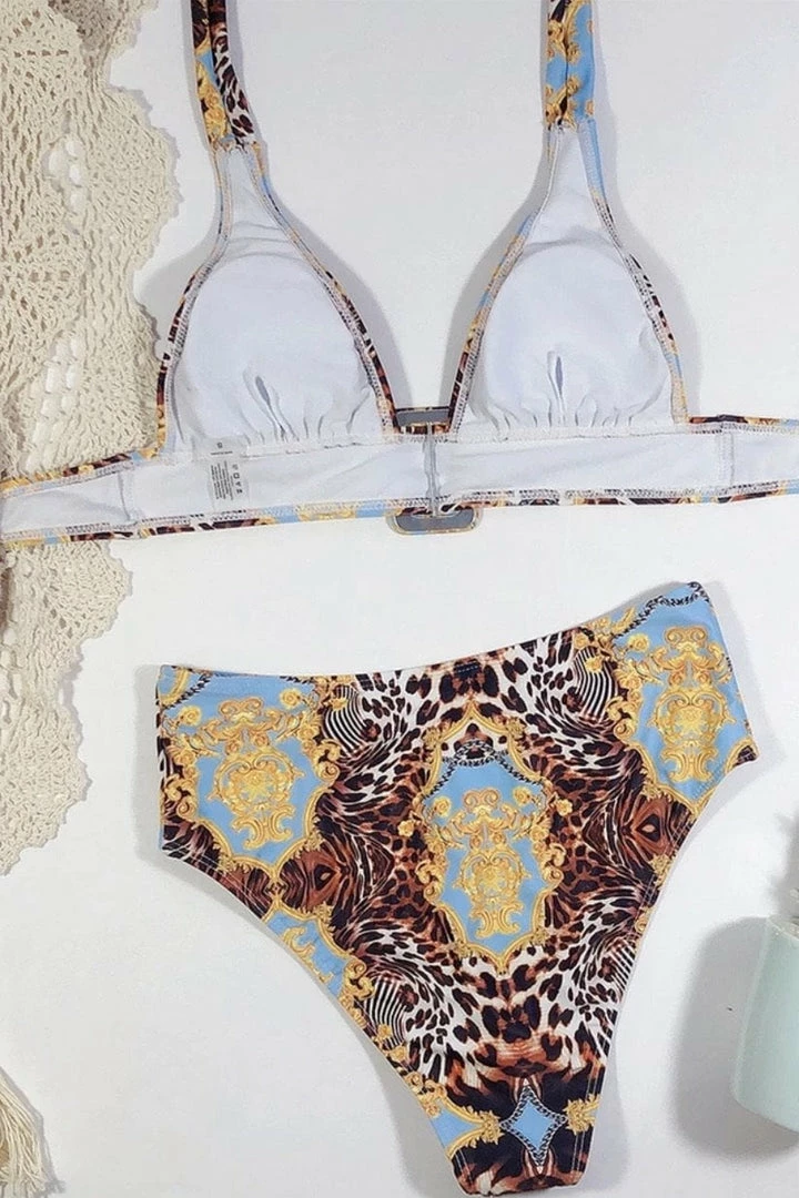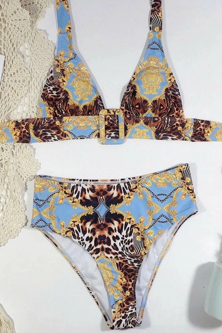 Jessica Bara Zahara Chain Print High Waisted Bikini Set Influencer Style
