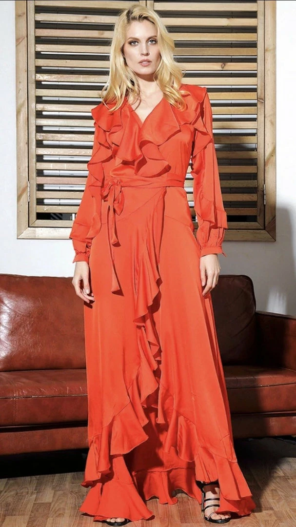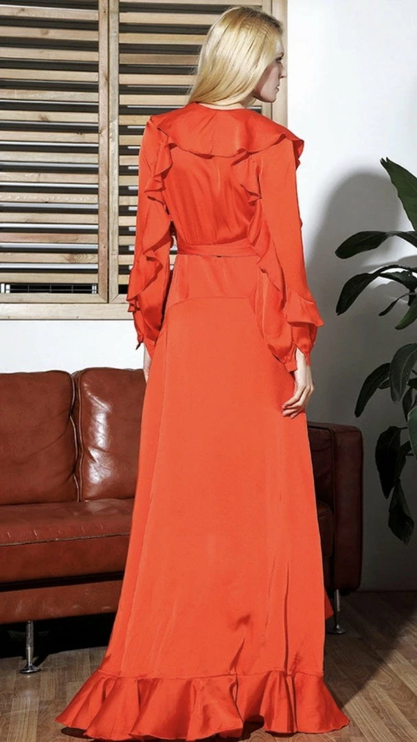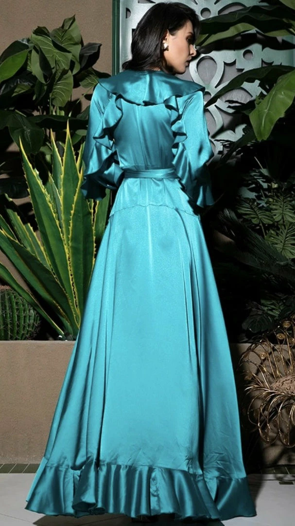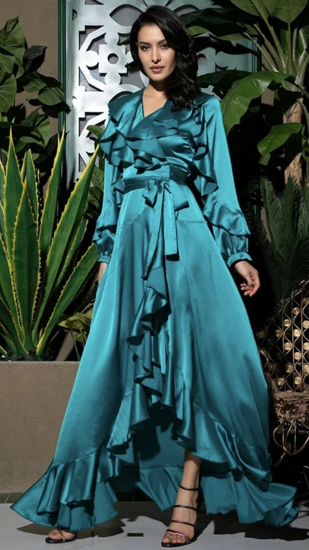 Our ‘Zion’ dress is everything elegant and classy. With a maxi length, ruffles throughout, a wrap waist, and long sleeves. Pair with wedges for a daytime event, and your highest heels for nighttime.