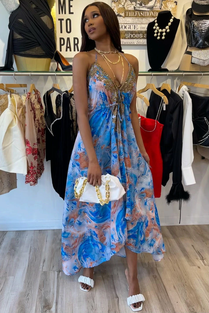 – Front criss cross halter Neck w/ V-backless Look.