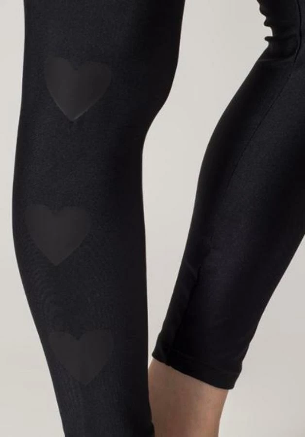 Every heart make you smile. This legging with bonded HEARTS on the bottom side is for the woman that happiness is her choice. Fabric: 86% Polyester / 14% Spandex