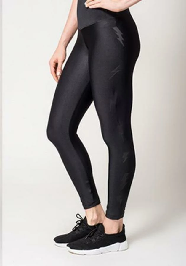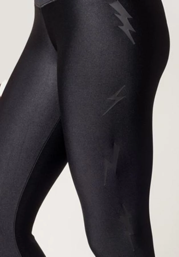 This legging is full length with our adhesive lightning bolts. Fabric: 86% Polyester / 14% Spandex