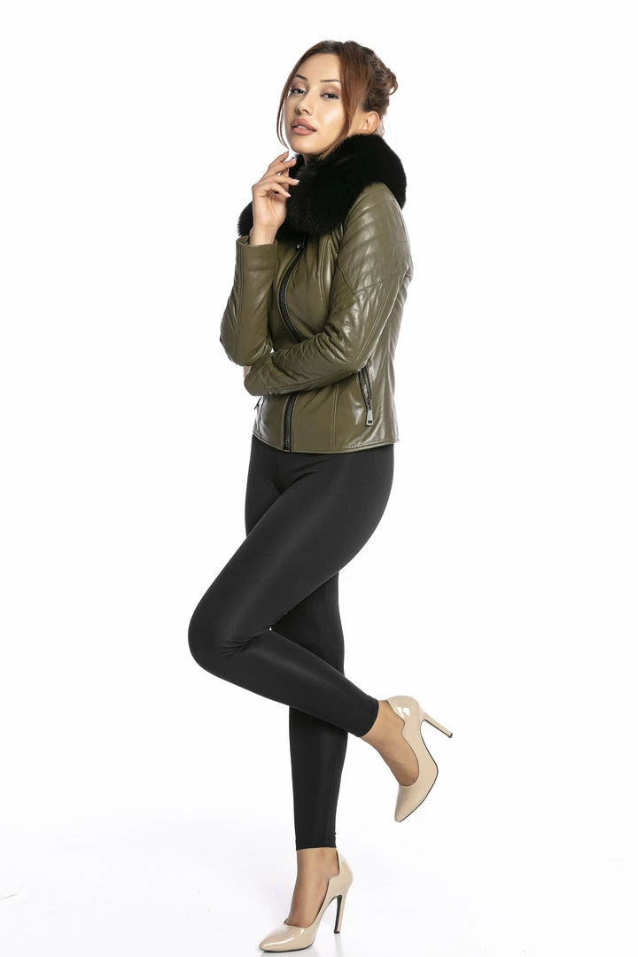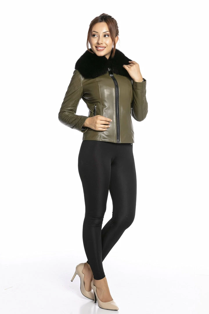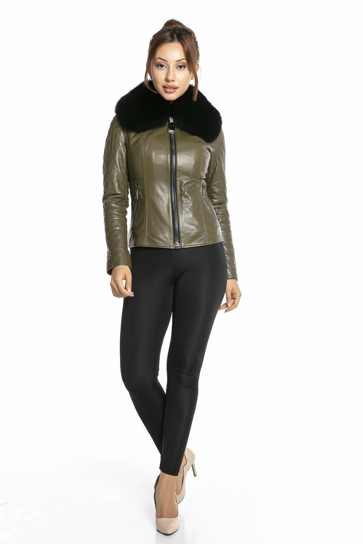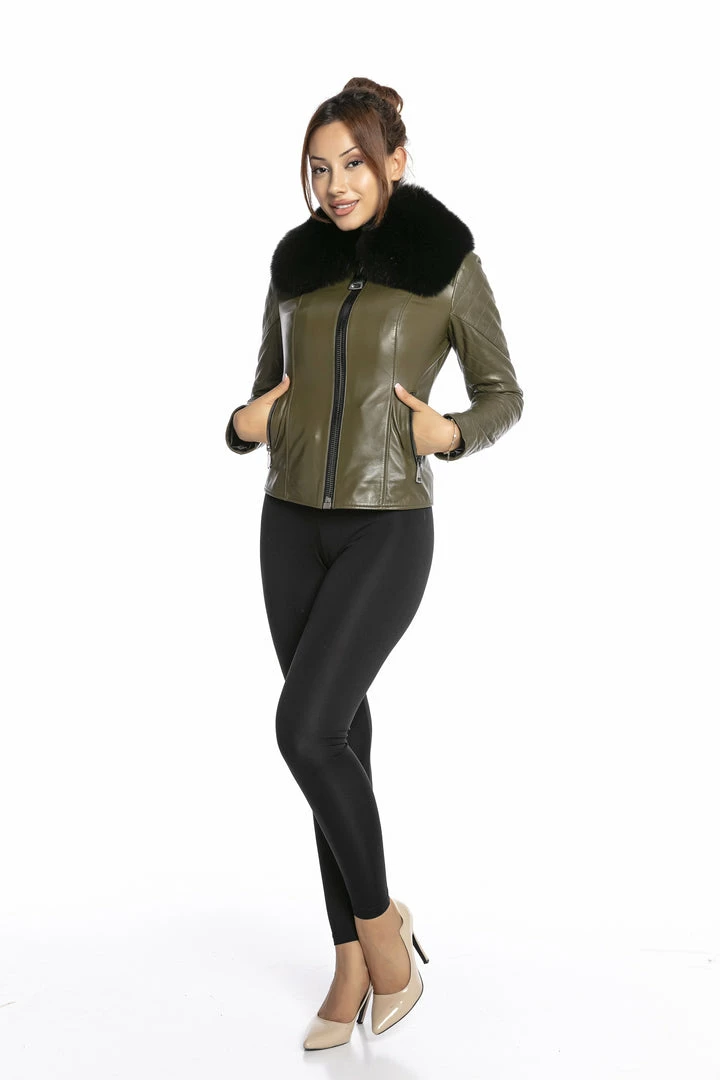 Luigi Long Sleeve Fur Collar Leather Jacket Reve Doll Essentials