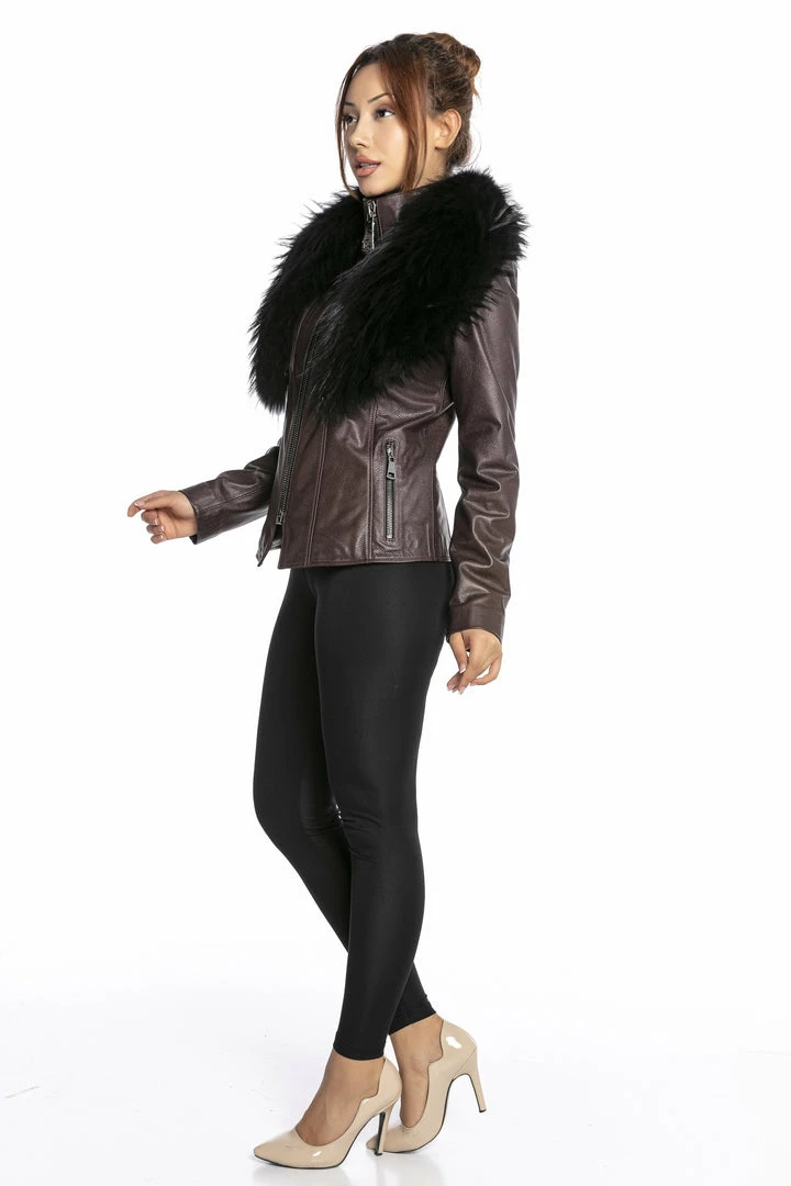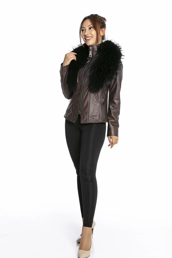 Luigi Long Sleeve Fur Leather Jacket Reve Doll Essentials
