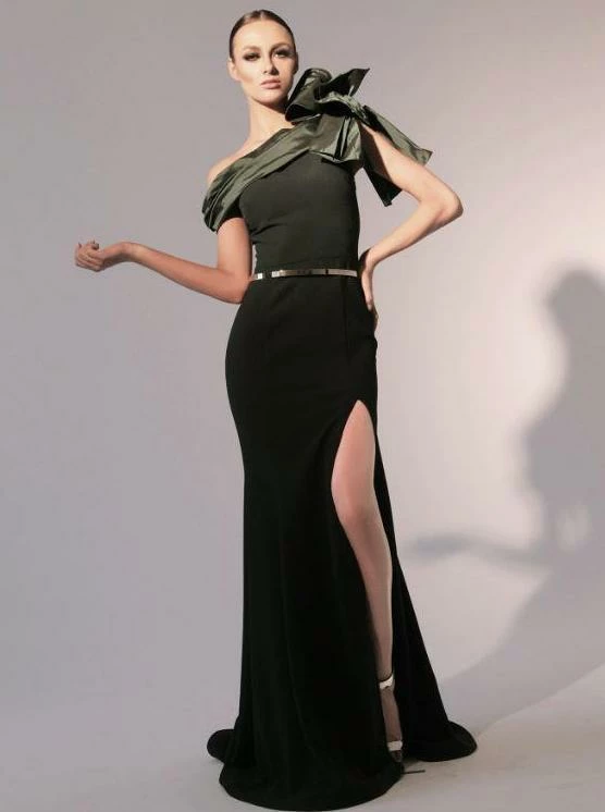 Nicole Bakti Slit One Shoulder Mermaid Gown The Event Shop