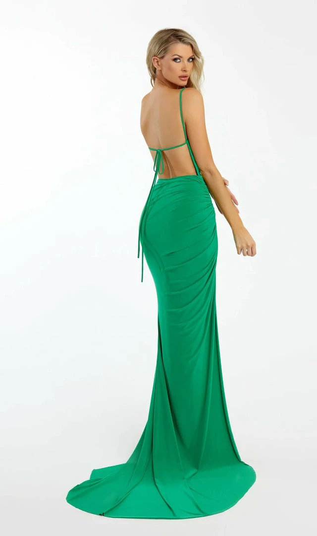 Nicole Bakti Spaghetti Strap High Slit Gown