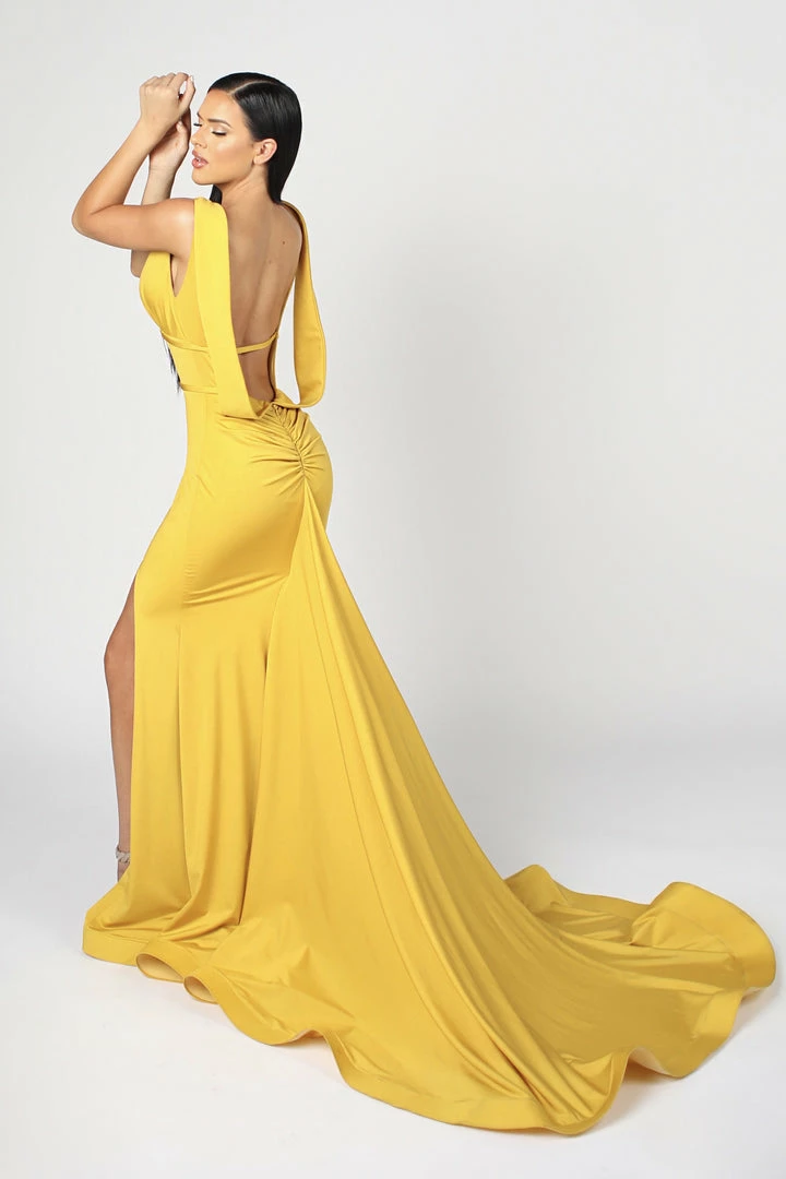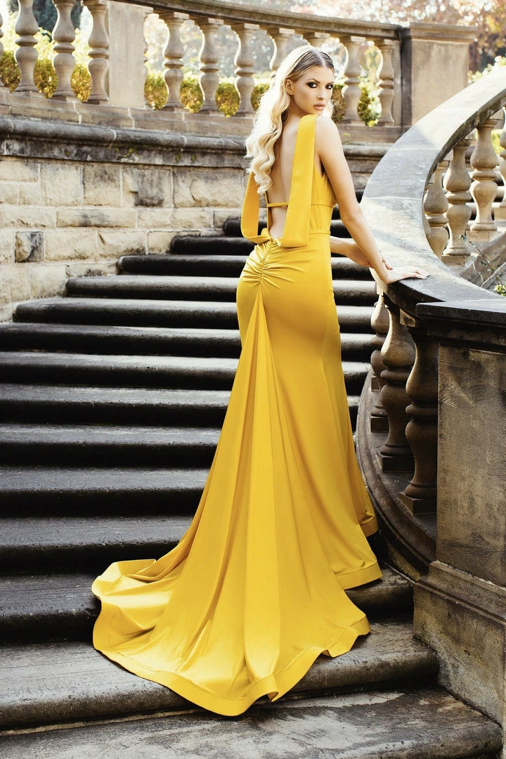 Be the first to review “Nicole Bakti V Neck Ruched Backless Bodycon Gown” Cancel reply