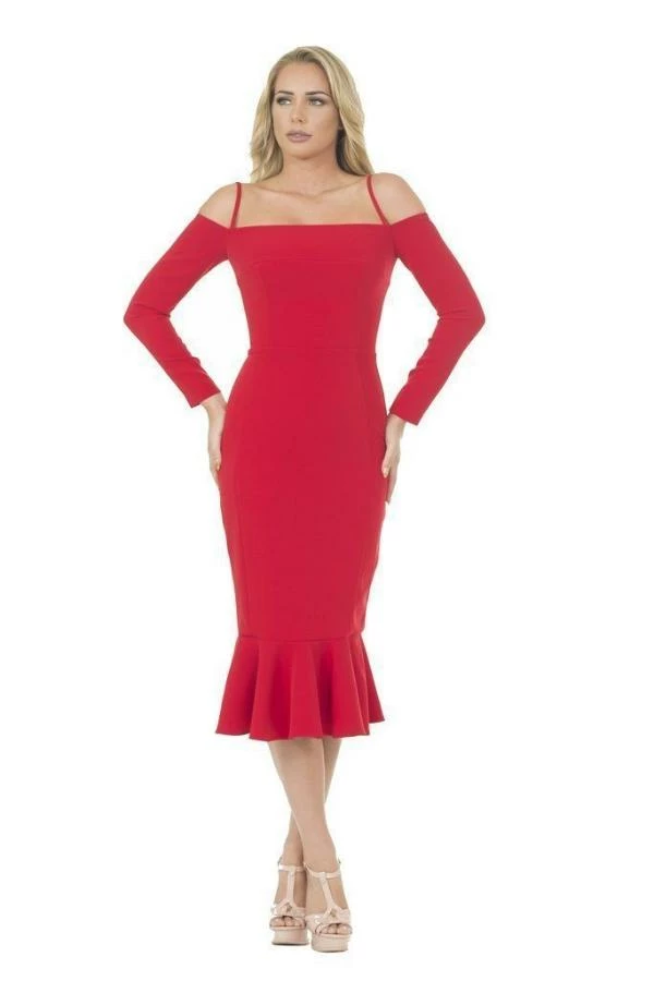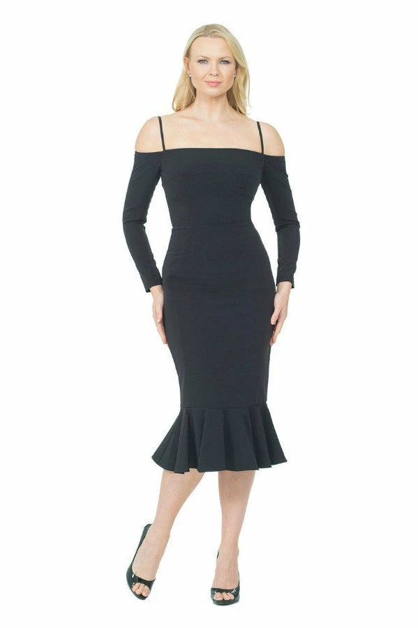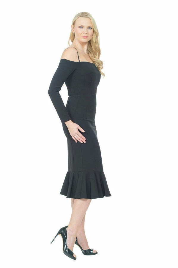 Off the shoulder cocktail dress with sleeves.