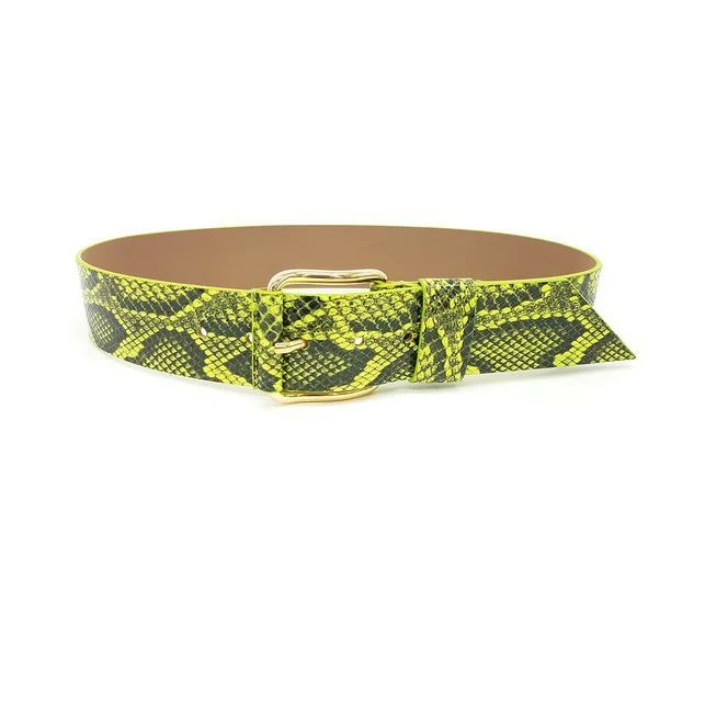 Waist belt made out of genuine leather with a snakeskin pattern and adjustable holes.