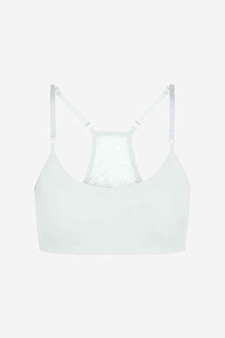 Our double-take racerback bra is all about stylish comfort. Show off the back lace details under your favorite tank or pair with a loose sweater for all-around comfort. Constructed with raw-cut Italian microfiber.