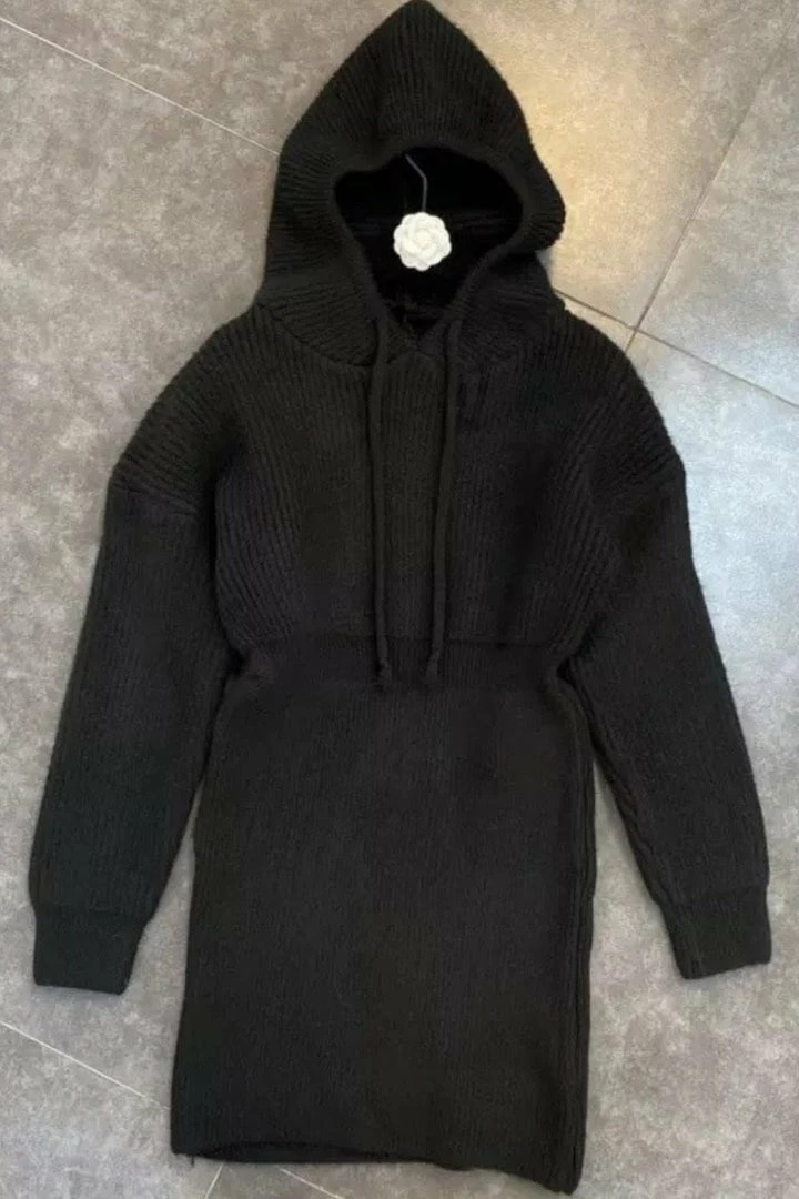 Reve Doll Essentials Jessica Bara Claire Long Sleeve Hooded Knit Dress