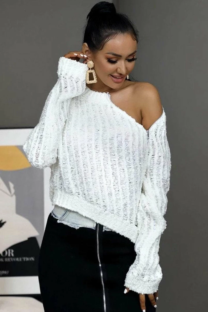 Get that effortlessly chilled vibe on-point with this sweater doll! Featuring a knit material with an off the shoulder zipper detailing and an oversized fit. Complete the look with some denim and chunky kicks for the ultimate stay at home combo.