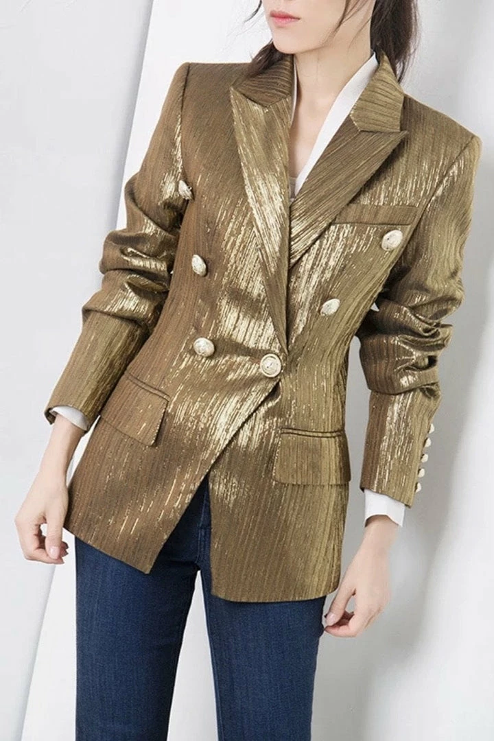 Reve Doll Essentials Jessica Bara Donatella Metallic Gold Button Blazer