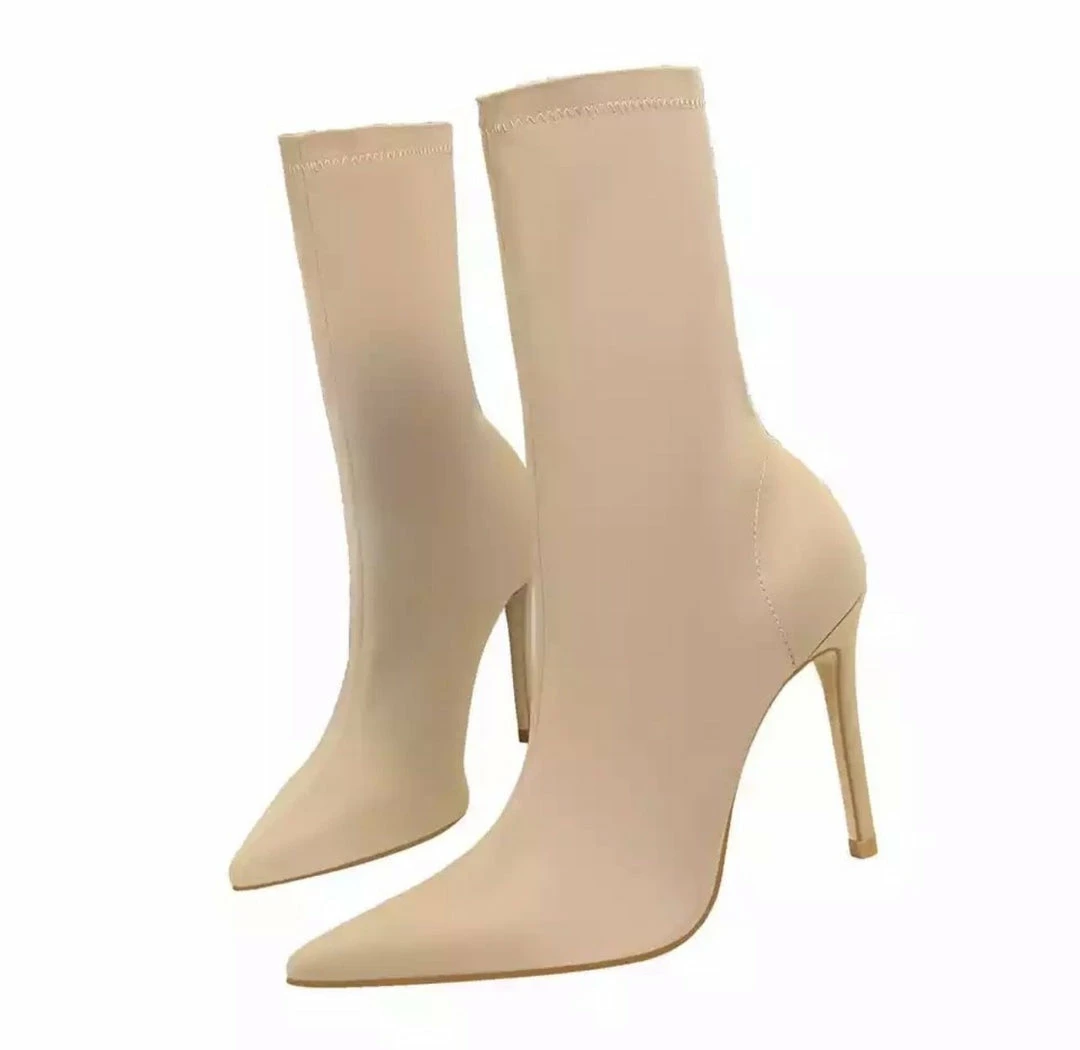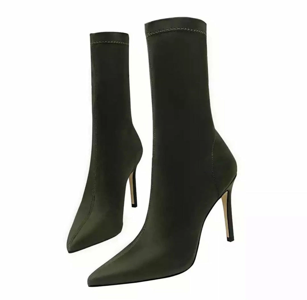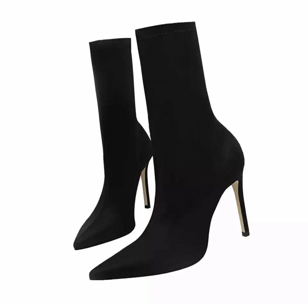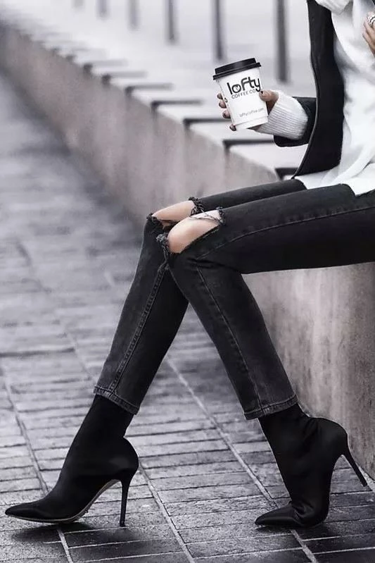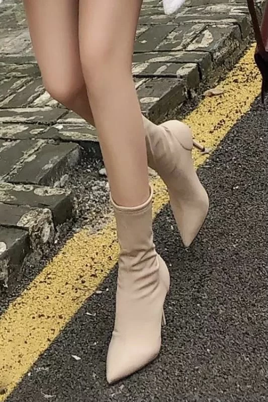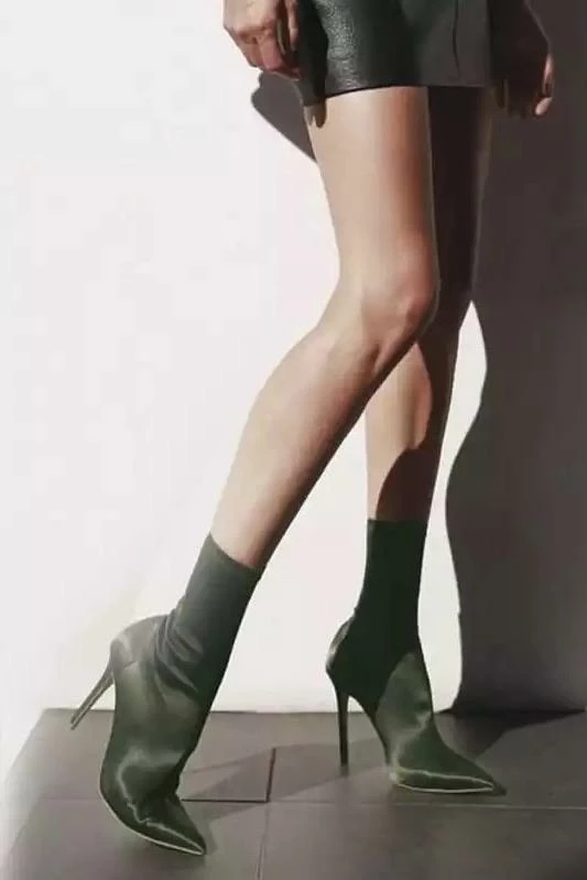 These ankle boots are all the trend with a pointed toe, heel, and elastic sock material. Pair with leather leggings or a mini skirt for a classic look.
