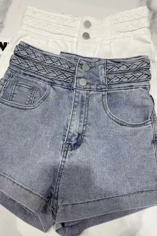 These shorts are a summer must have dolls! With a snug high waisted fit and a braided band detail. Pair with a crop top and chunky sneakers for a casual summer look.