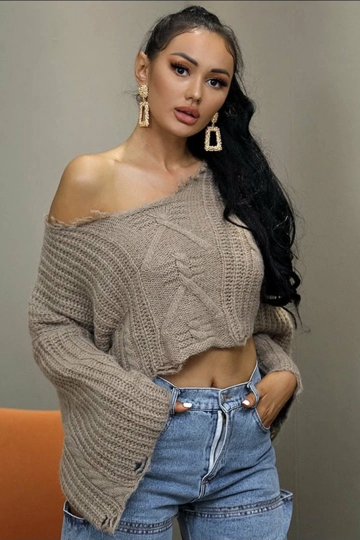 Elevate your look this season with this cropped sweater! Featuring a knitted material with distressed details and long flared sleeves, we’re obsessed. Team with light wash jeans, ankle boots, and a shoulder bag for a look that’s sure to get you noticed.