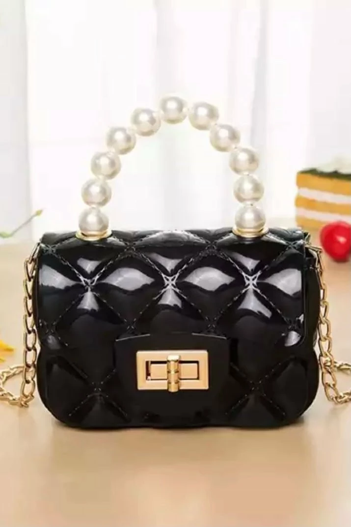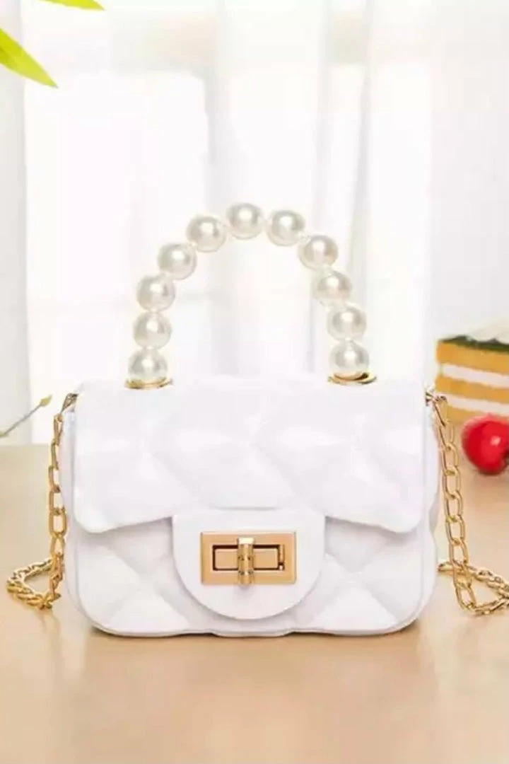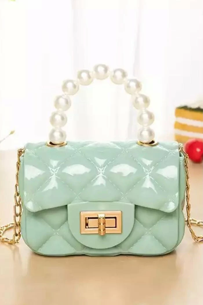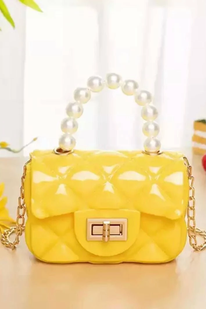 This little purse is the perfect size for your night out needs! Featuring a jelly micro handbag with a pearl strap and a long, gold crossbody chain. Throw your wallet and lipgloss in to head to the clubs looking cute!