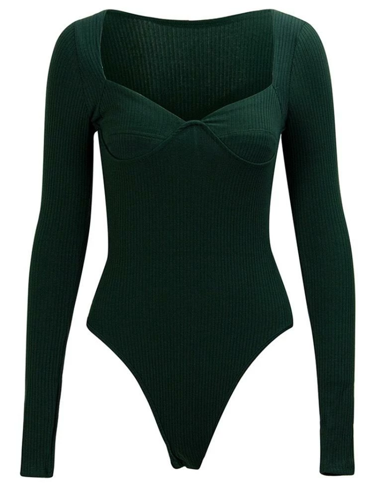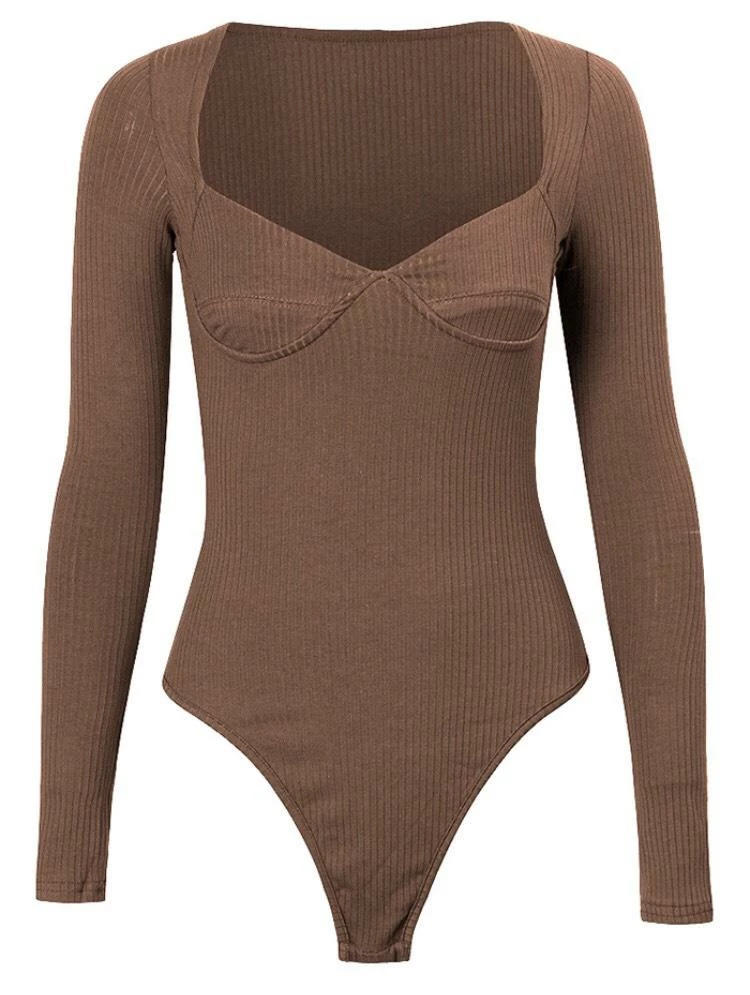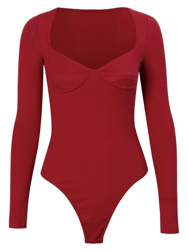 A must-have piece to have in your wardrobe! This bodysuit features a jersey material, long sleeves, and a v-neck style.