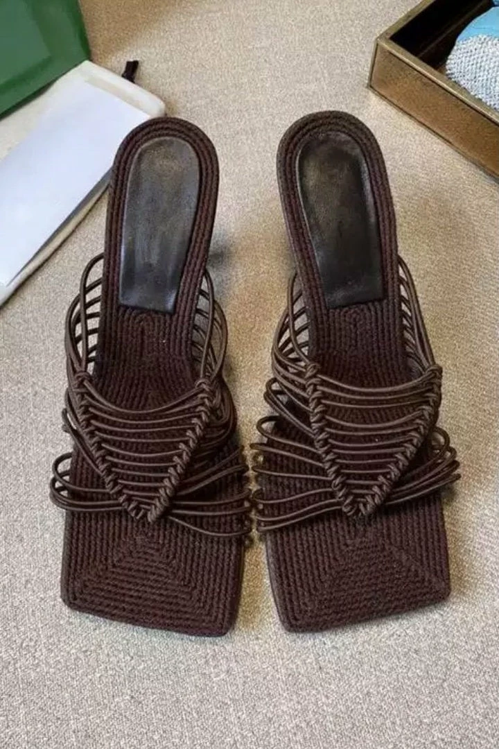 We’re crushing hard over these woven, strappy flip flop heels featuring a square, open toe. Pair it with any of your summer outfits to look beach chic!