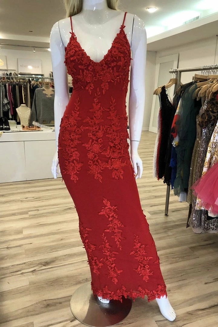 Love lace? Then you will adore this beautiful gown! Featuring a bodycon fit, v-neck detail, spaghetti straps, and intricate lace details all over. Pair with nude heels and tousled waves.
