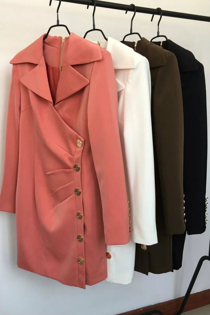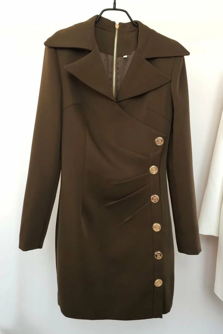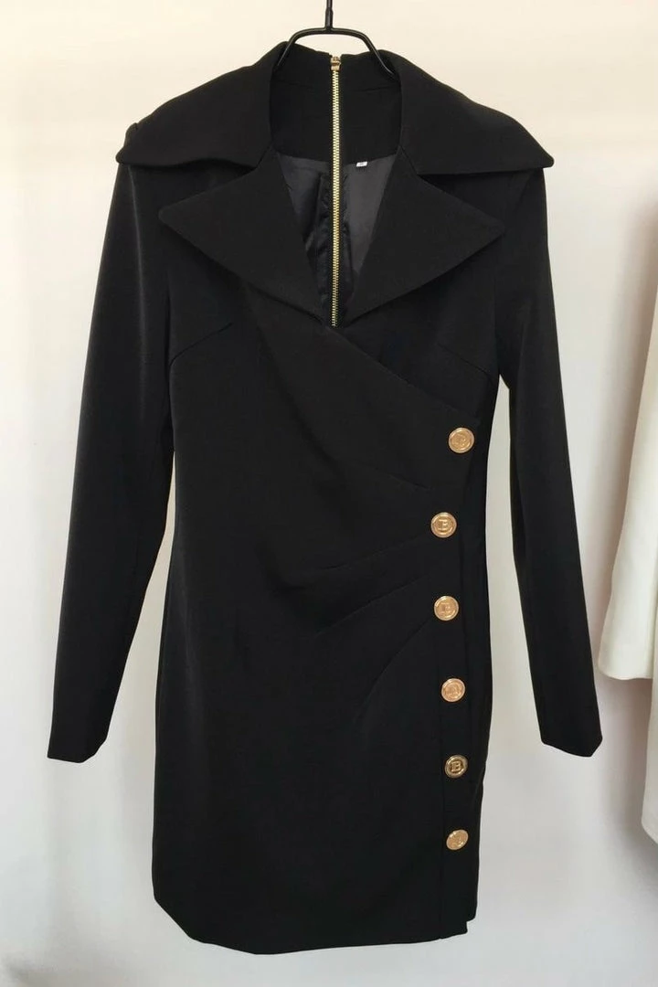 Dress up or dress down, this mini is a staple for the season! Featuring a long sleeve, collared mini dress with gold button details. Style with heels and gold jewelry to look oh so chic on your next night out!
