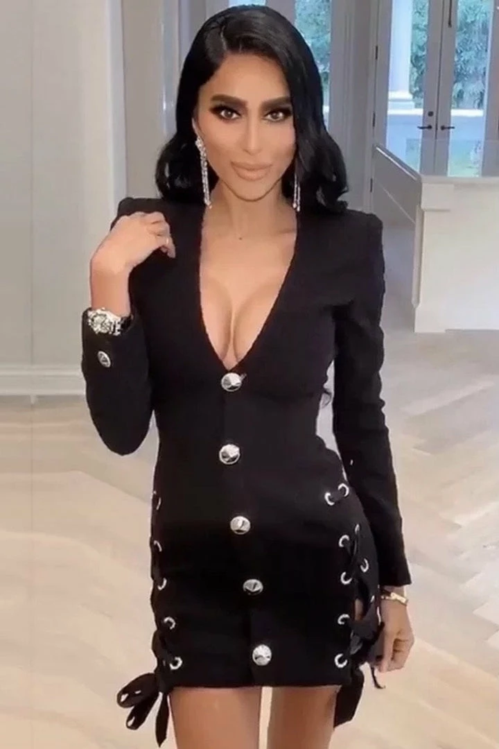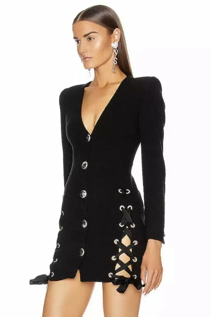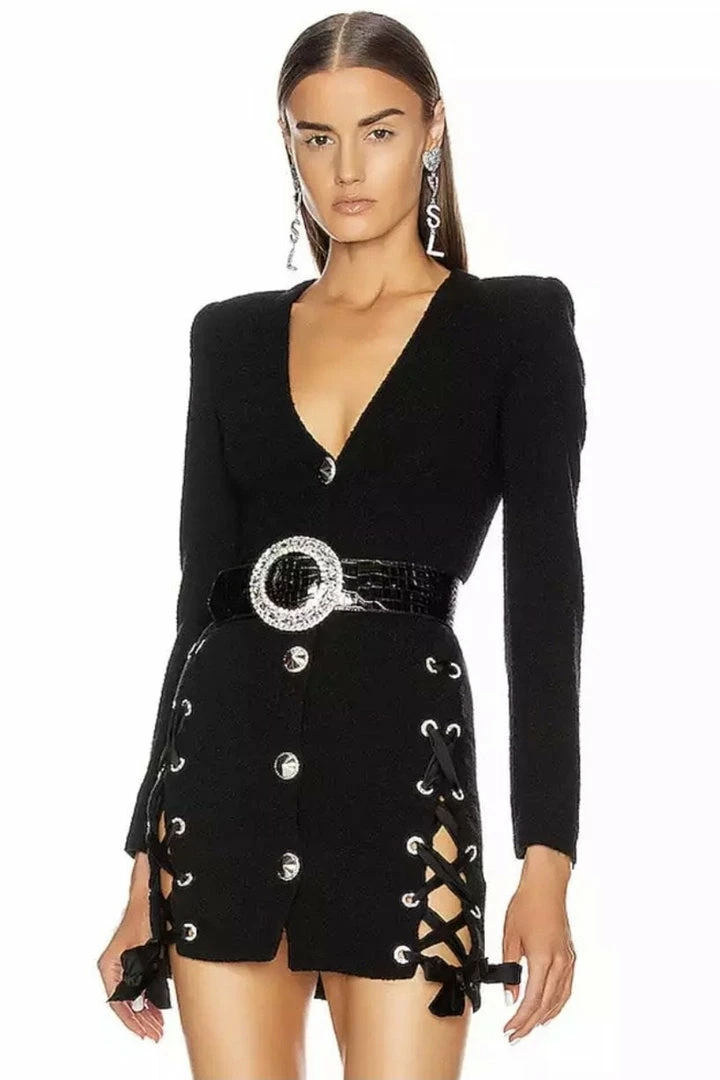 ReveBoutique Jessica Bara Tamari Long Sleeve Lace Up Mini Dress