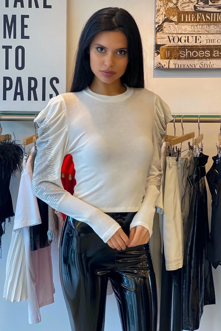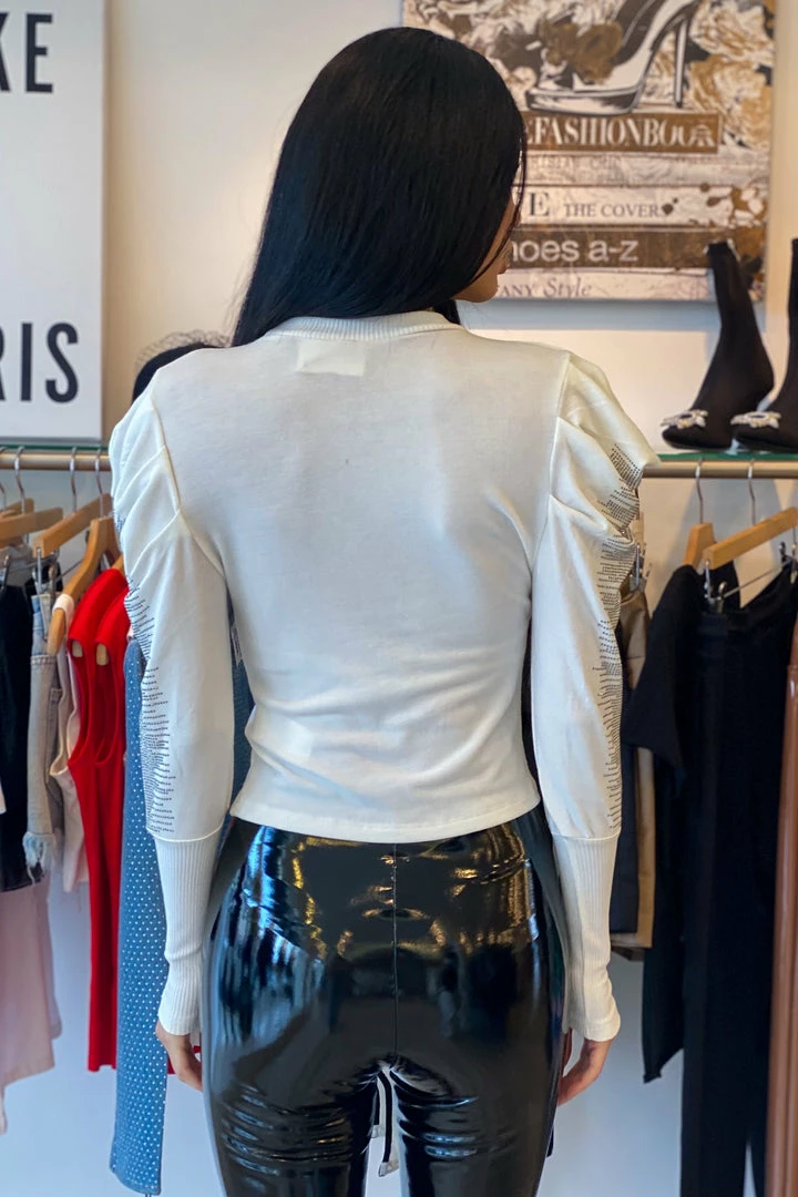 ReveBoutique Tops Jessica Bara Ashton Rhinestone Puff Long Sleeve Top