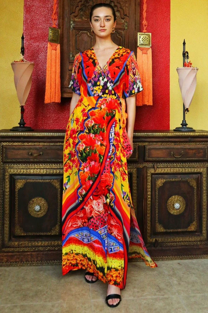 Shahida Parides Wrap Dress In Yellow Lemon Drop