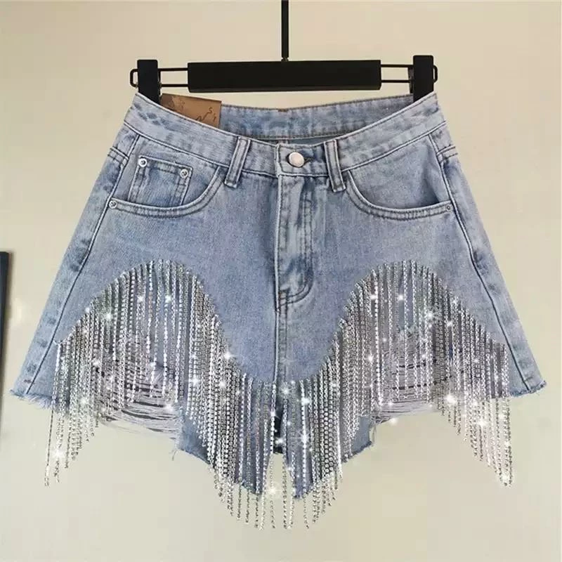 Summer Lovin’ Jessica Bara Aleah High Waisted Rhinestone Denim Shorts