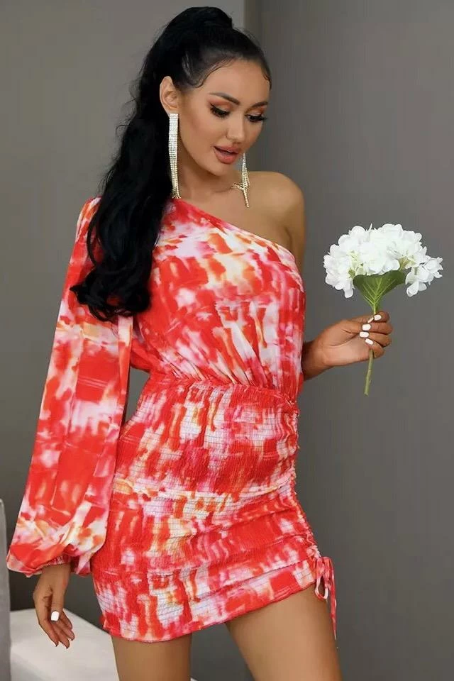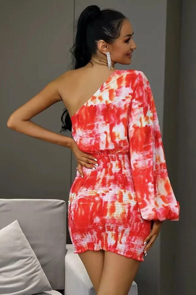 This vibrant tie-dye mini dress will make all the heads turn! Featuring a one shoulder, long sleeve design and ruched detailing. Pair with your favorite statement earrings and heels for a flare to your daytime wardrobe.