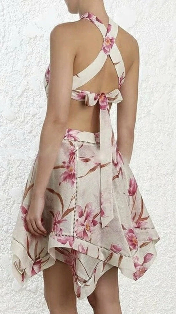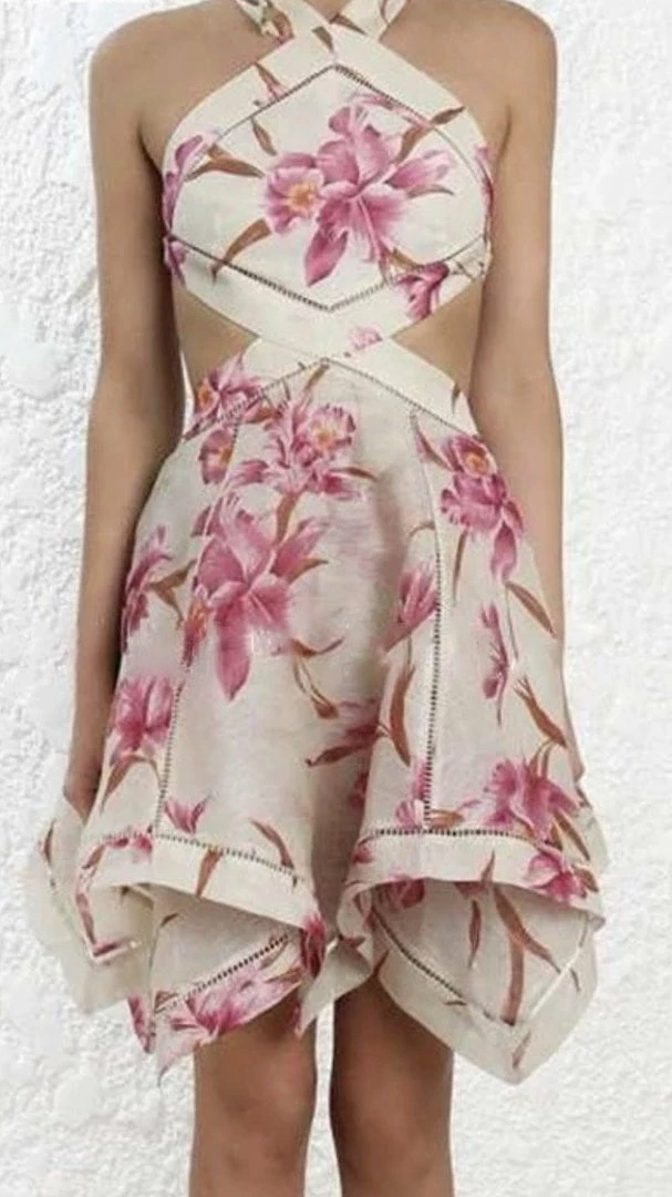 Our ‘Ruthie’ Dress is the perfect summer event dress. Featuring a floral pattern, waist and back cut-outs, a bow tie in the back, and length that hits right above the knee.