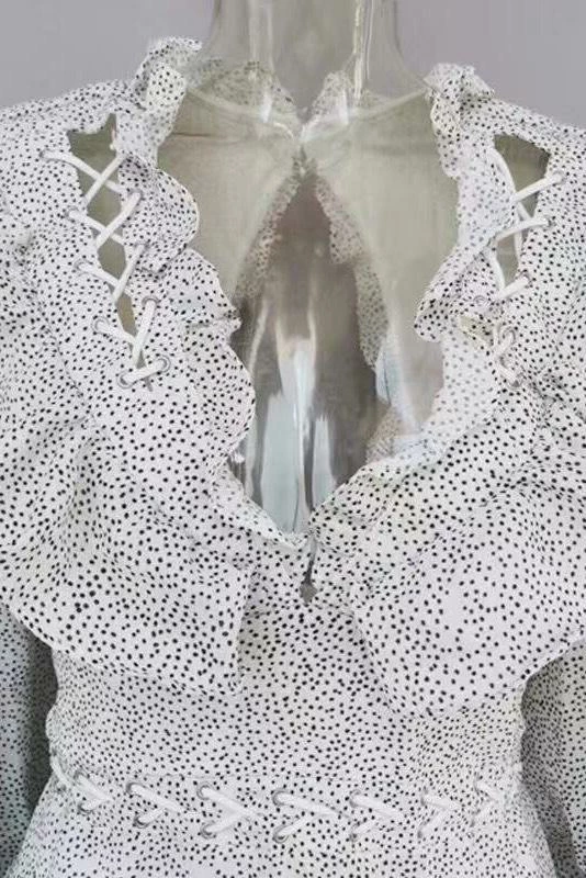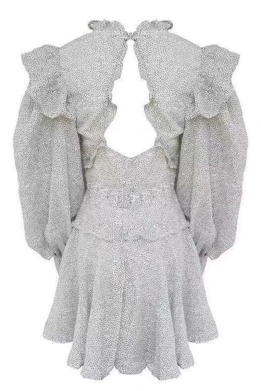 For dresses designed to impress, look no further than our ‘Solie’ dress! Featuring long billowy sleeves, ruffles, open back cut-out, and mini length. Style with a red lip and tousled waves!