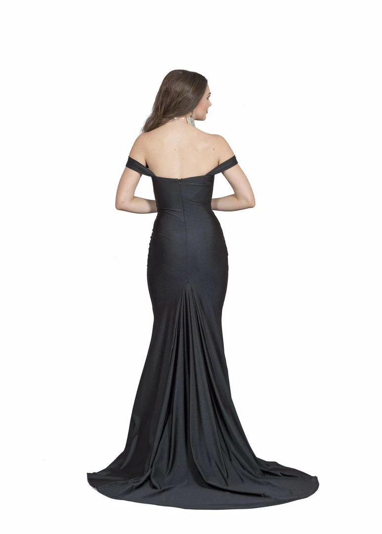 A sharp and elegant bridesmaid look with off shoulder straps and scrunch on the front.