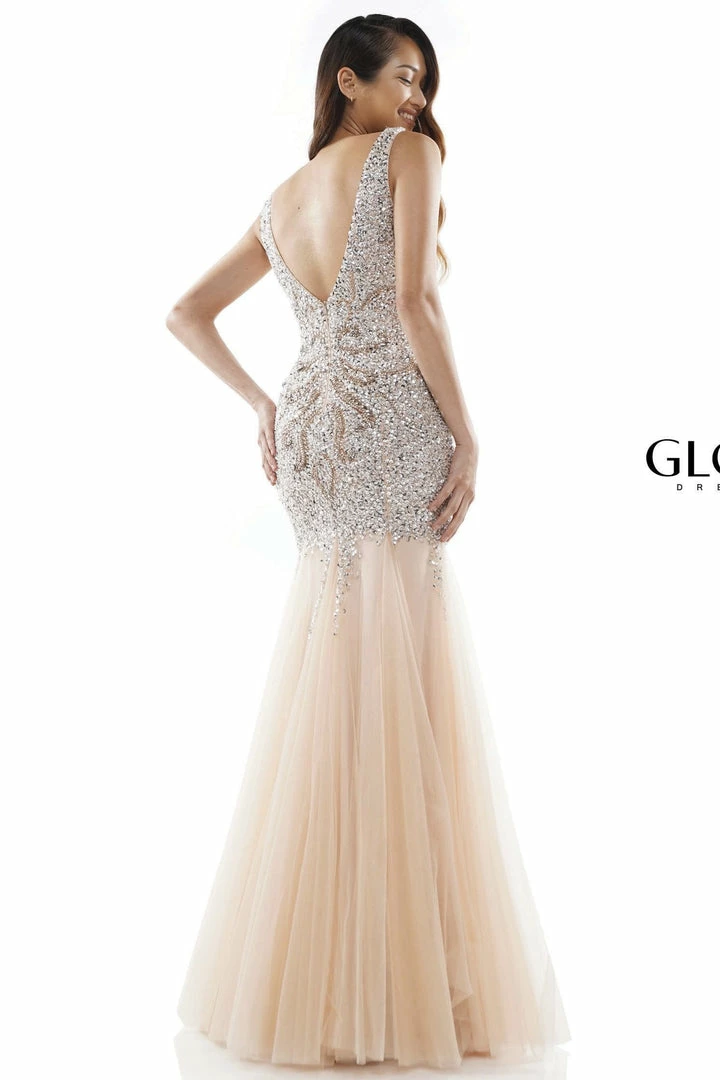 Flaunt your figure in this fabulous evening gown from Glow G697. The beautiful sparkling dress features a sleeveless and plunging v-neckline with beading and jewels adorning the entire dress. The mesh skirt is snug at your hips and flares with a decadent sheer mermaid hemline. Make this Glow by Colors ensemble part of your collection today.