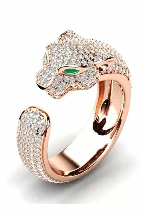 We’re loving this fully dazzled accessory. Featuring a rhinestone studded ring with a panther head. Stack it with your other rings for an iced out look.