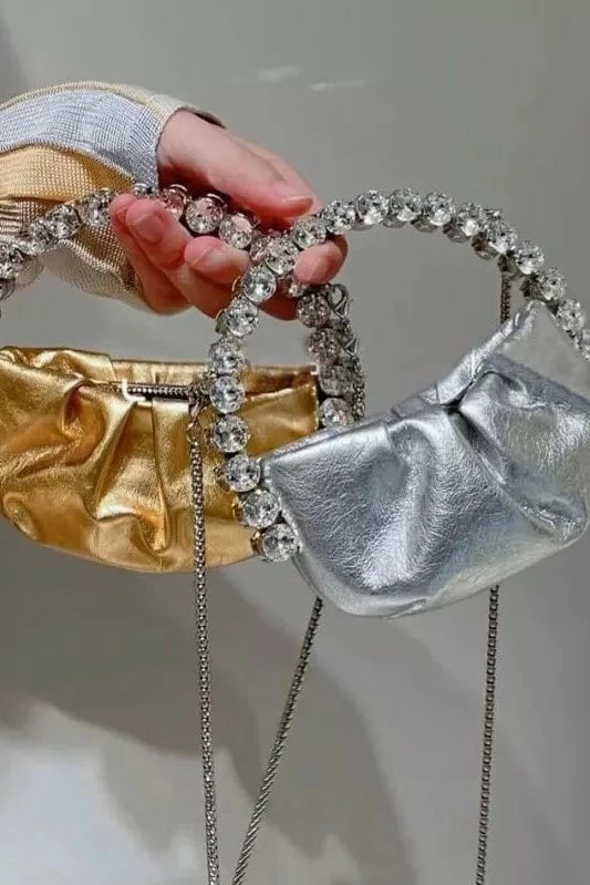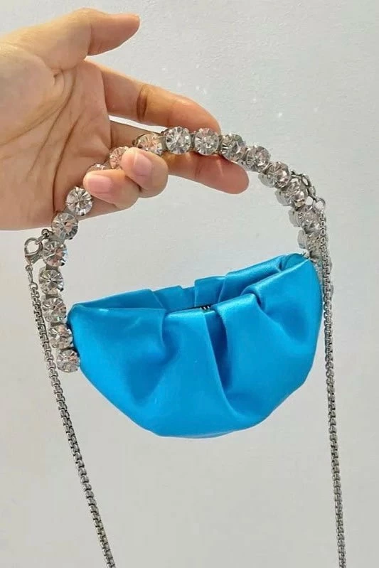 We’re loving this mini moment on your next night out! Featuring a micro handbag with a pleather material, chunky rhinestone strap, and a silver chain crossbody strap. Go for the pop of color to spice up your next look!