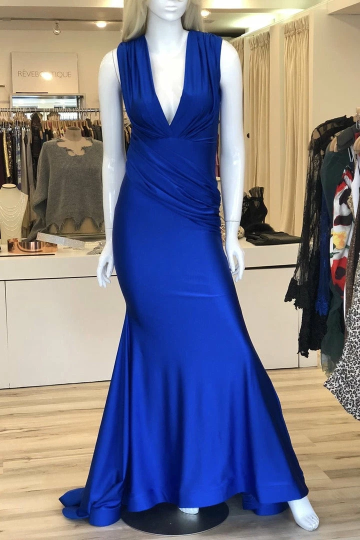 We are obsessing over this gorgeous gown dolls! Featuring a fit-and-flare style, deep v-neck, draped detailing around the waist, and floor length.