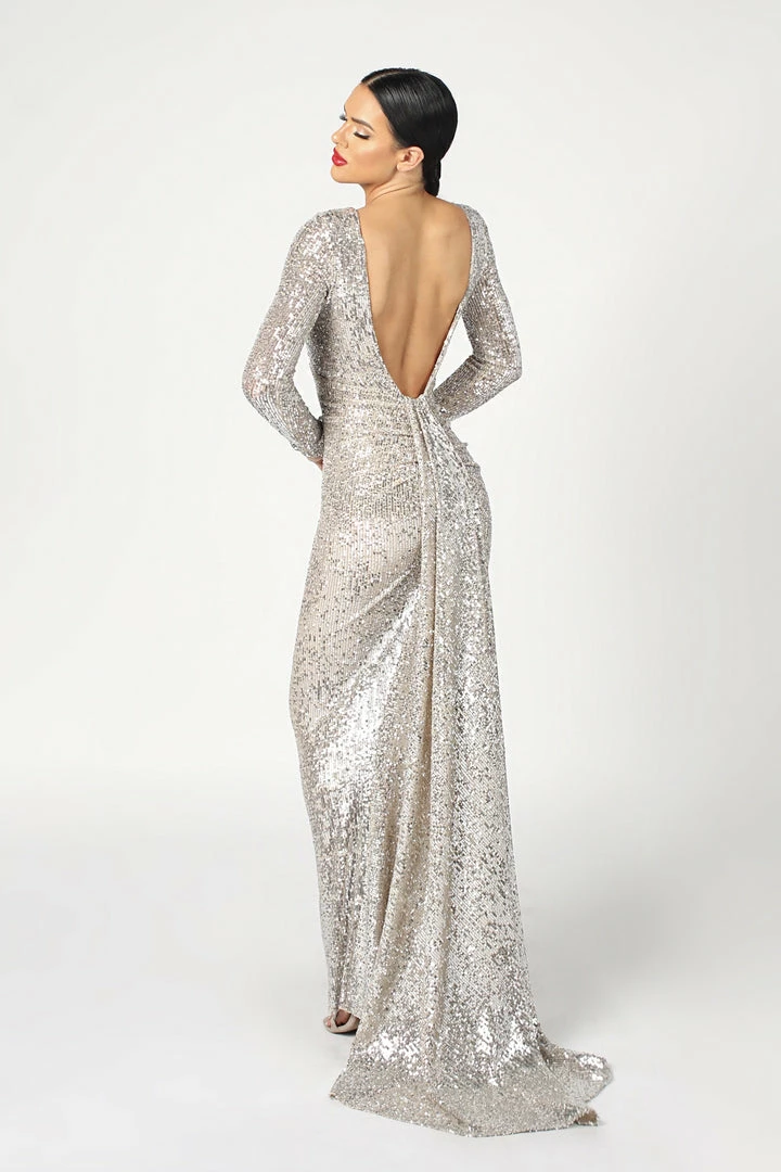 The Event Shop Nicole Bakti Long Sleeve Sequin Backless Gown